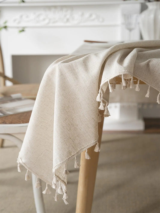 Lněný béžový ubrus v Boho Stylu