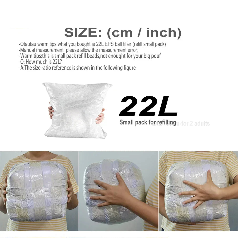 EPS kuličky v balení o objemu 22 litrů. Abyste vyplnili některý ze sedacích pytlů z naší nabídky, musíte objednat více balení EPS kuliček.