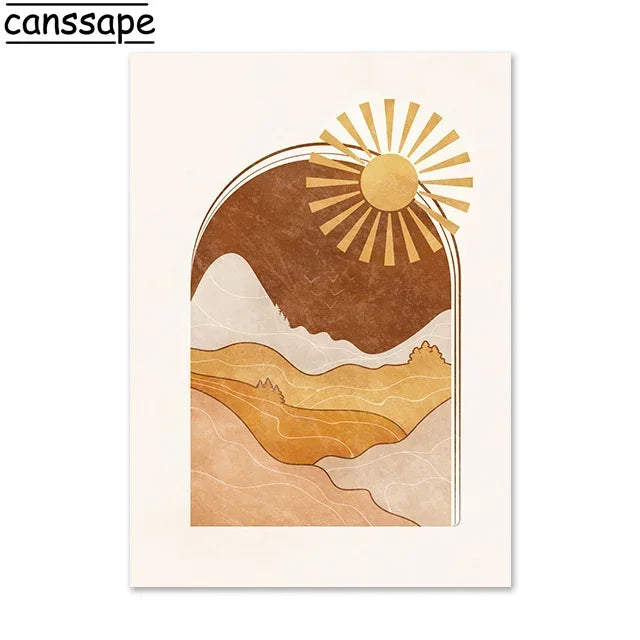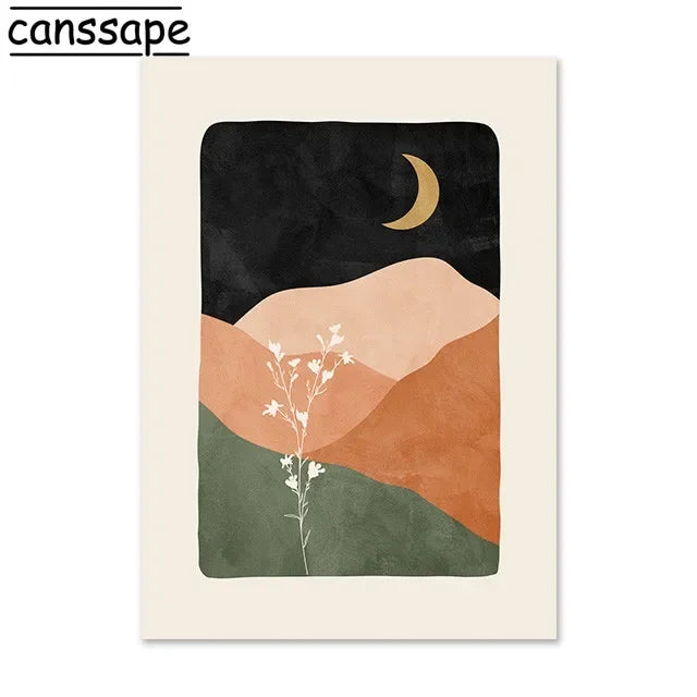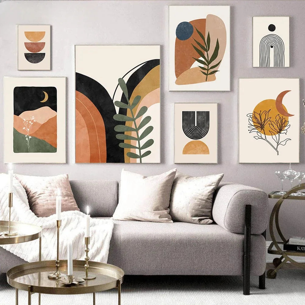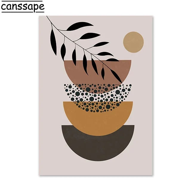Abstraktní skandinávské obrazy Boho Botanic. Obrazy tištění na plátně vypadají, jako olejomalba. Abstraktní obrazy botanických a geometrických vzorů v teplých přírodních odstínech v boho stylu. Obrazy můžete různě kombinovat a vytvořit si tak svůj vlastní set a kompozici, která bude odpovídat vaší představě. Na výběr z mnoha variant a několika různých velikostí.