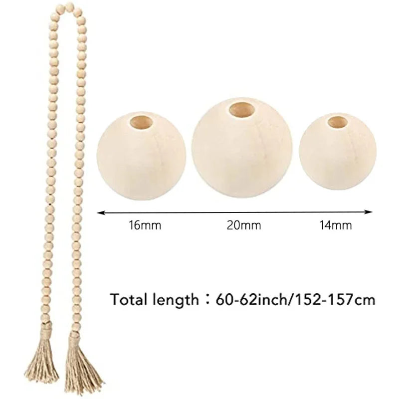 Dřevěná korálková rustikální girlanda se střapci v Boho stylu Farmhouse