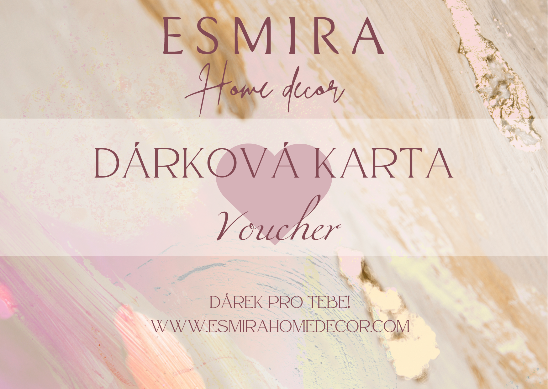 Dárková karta na nákup produktů na stránkách www.esmirahomedecor.com.