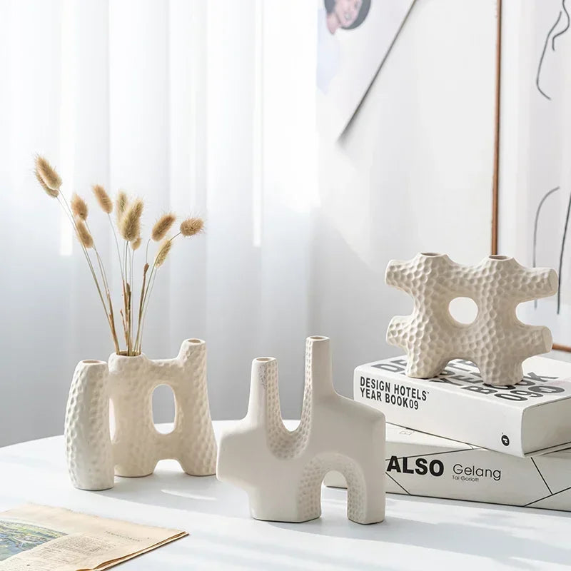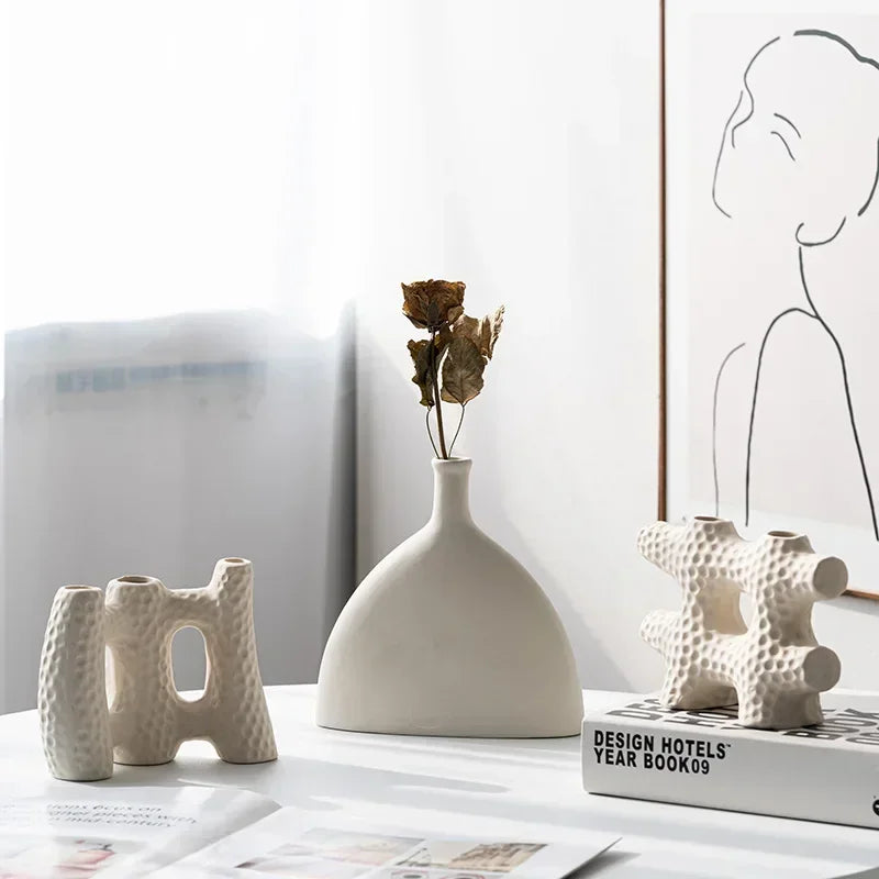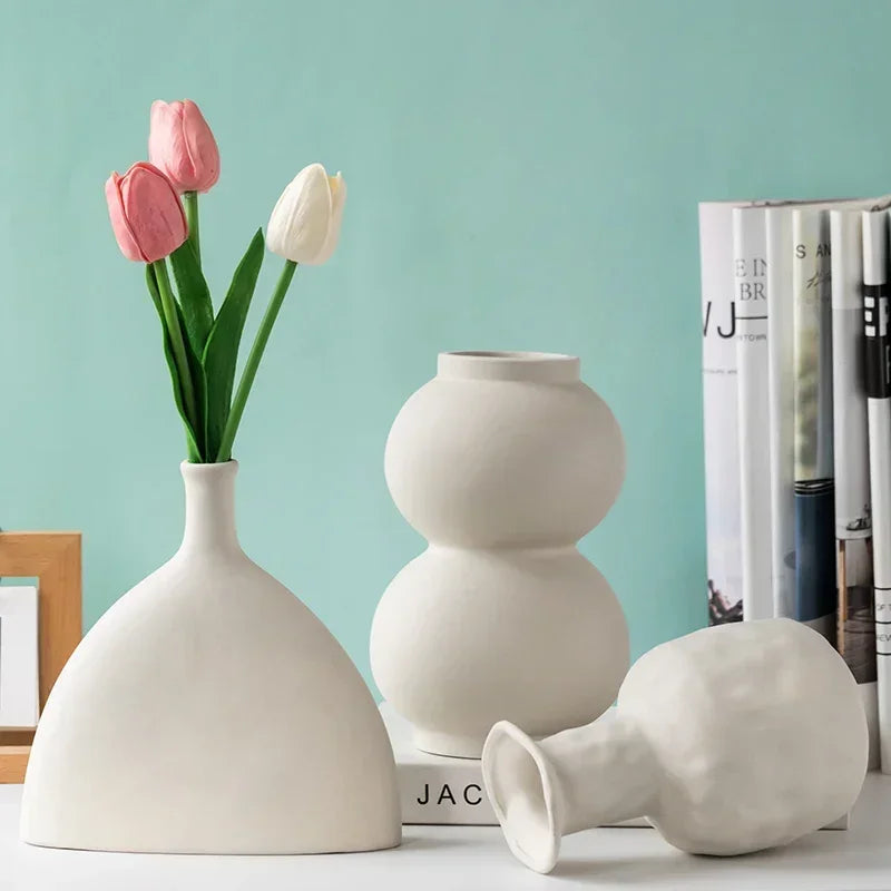 Keramické vázy Uwhel. Bílé keramické vázy v designovém moderním provedení. Abstraktní a minimalistické vázy, které můžete navzájem kombinovat.