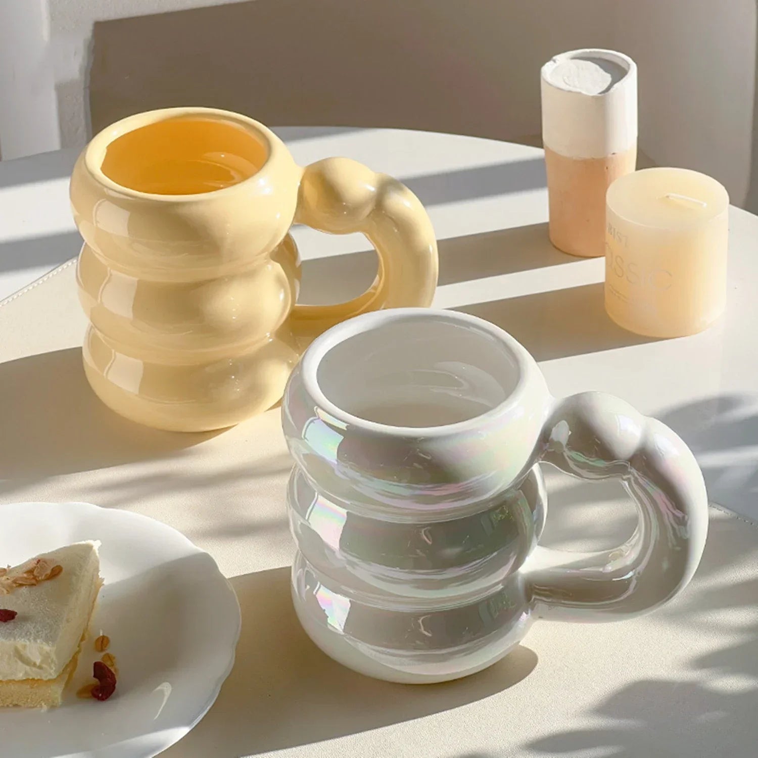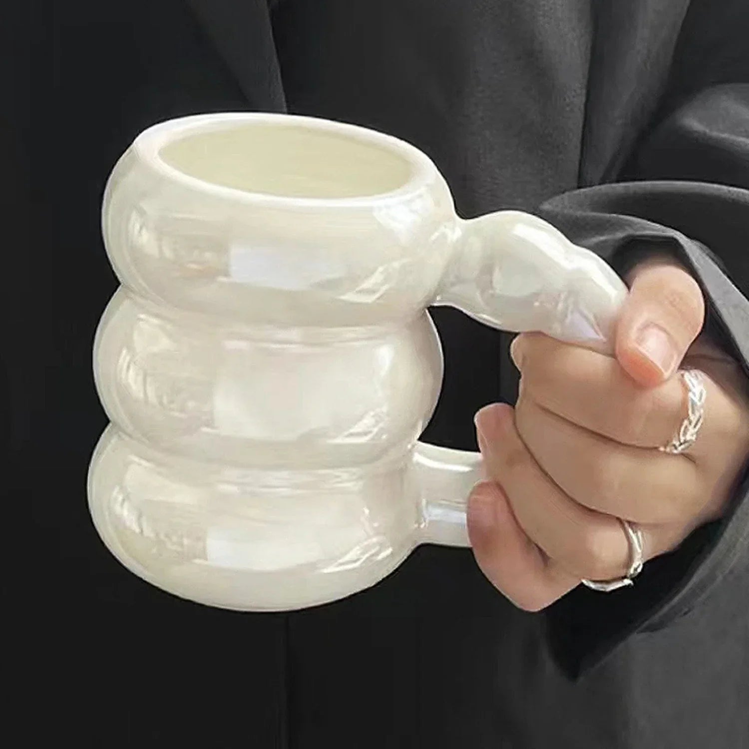 Keramický hrnek Bubble. Hrnek na kávu s perleťovou glazurou s roztomilým oválným tvarem připomínajícím bubliny. Hrnek na kávu s uchem. Keramický hrnek Bubble je k dostání ve více barvách. Hrnek je vhodný do mikrovlnky.