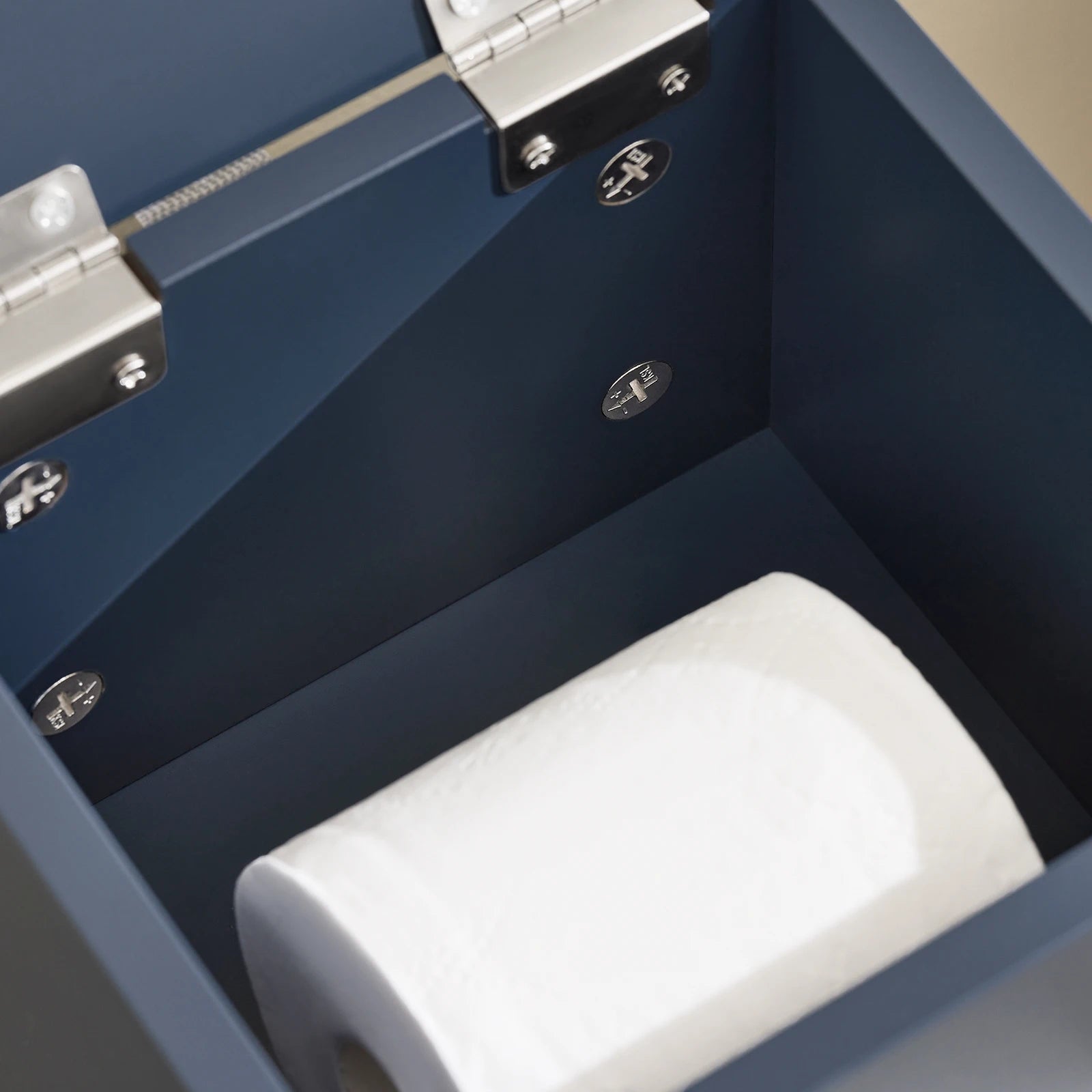 Díky svým kompaktním rozměrům se skříňka hodí hned vedle toalety a vejde se i do menších koupelen. Konec nevzhledným rolím na očích – vše bude elegantně uklizené a přesto po ruce.