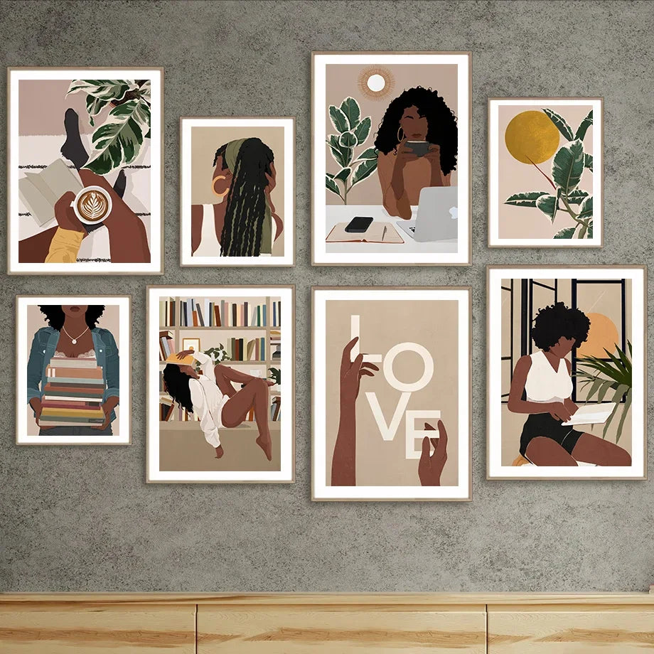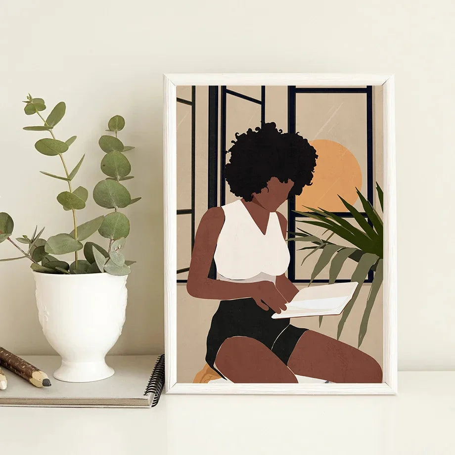 Obrazy na plátně Student Girl. Obrazy tištěné na plátně zobrazují dívku, která studuje, čte, pracuje, vzdělává se. Obrazy jsou v tlumených přírodních barvách. Sestavte si svou vlastní kombinaci obrazů. Obrazy jsou dostupné ve čtyřech velikostech a různých motivech. Obrazy bez rámu.