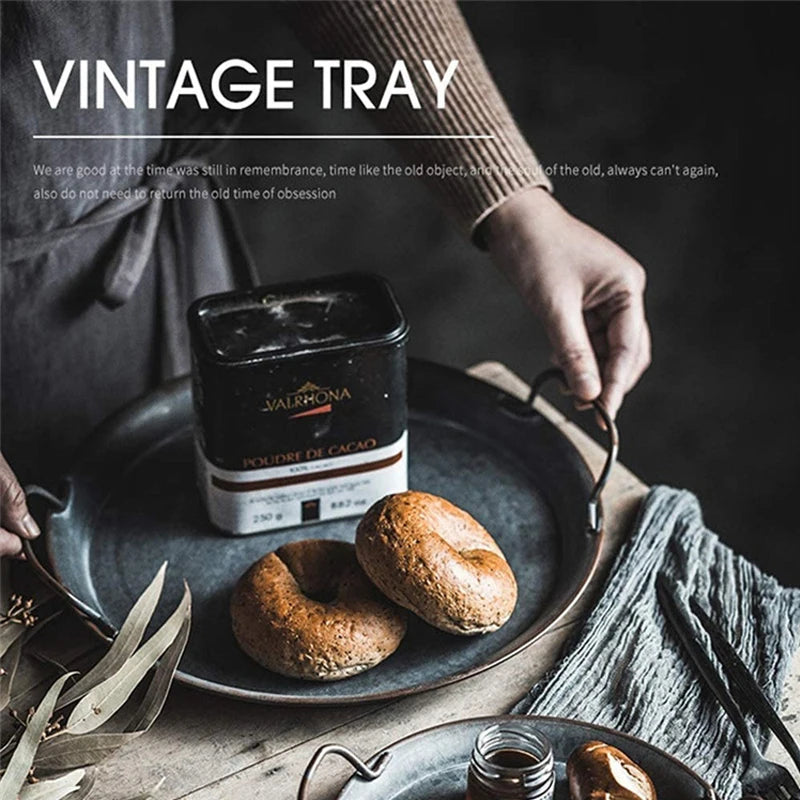 Retro kovový tác Charles s nádechem nostalgie. Kovový tác Charles má vintage vzhled a ruční zpracování kovu dodává na originalitě každého kusu. Retro kovový tác tmavě šedé barvy je možné objednat i jako set 2 ks.