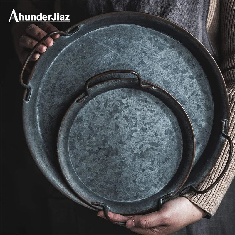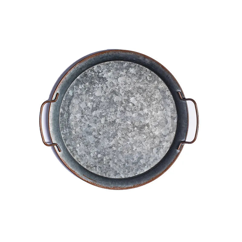 Retro kovový tác je dostupný ve dvou velikostech, případně jako set 2 kusů. Kovový tác je vyroben z tepaného železa, což zaručuje jeho odolnost a jedinečný vzhled.