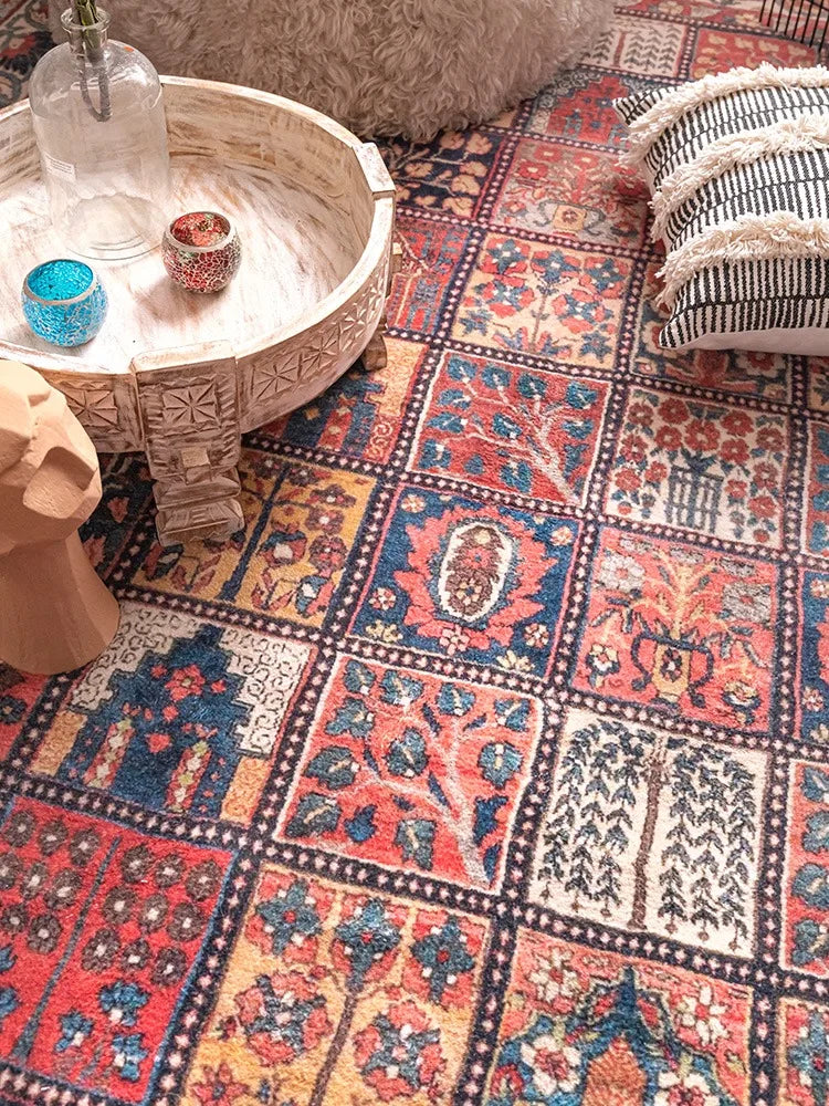 Retro vzorovaný koberec Persian. Krásný perský koberec s rozmanitým vzorem je v dostání v různých provedeních, ve kterých dominuje červená a bílá barva. Skvěle se kombinuje s interiéry v Boho stylu. Koberec má obdélníkový tvar. Koberec se hodí do různých interiérů i místností. Koberec má protiskluzovou úpravu. K dostání je ve více velikostech. Materiál: 100% polyester.