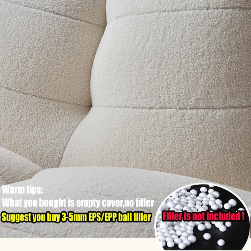 Sedací vak s taburetem nejsou vyplněny a výplň je nutné objednat zvlášť. Sedací pytel i taburet můžete vyplnit různými druhy výplní, ale pro tento produkt doporučujeme objednat výplň ve formě polyesterových kuliček 3-5 mm v objemu alespoň 450 litrů pro sedací vak a 70 litrů pro taburet.