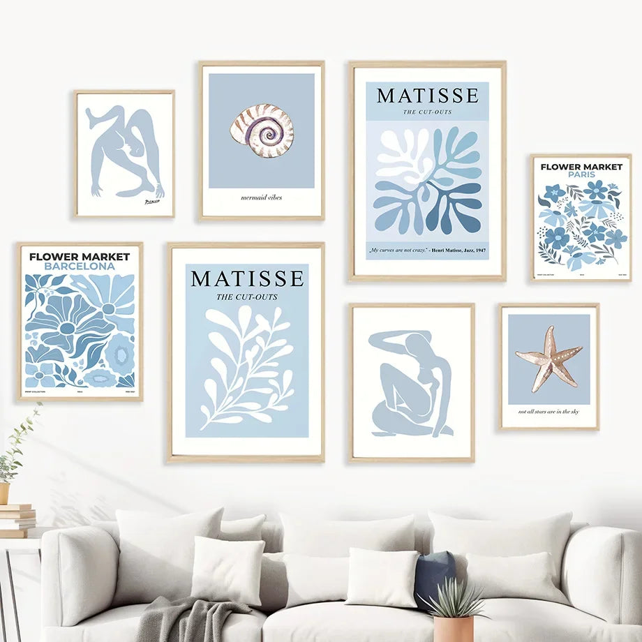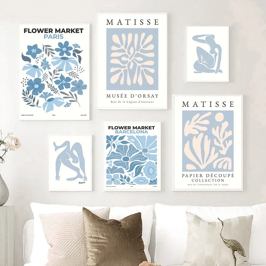 Set obrazů na plátně Blue Matisse Flower.