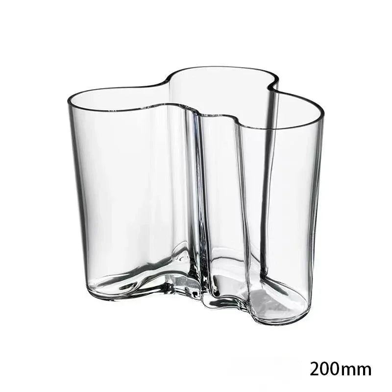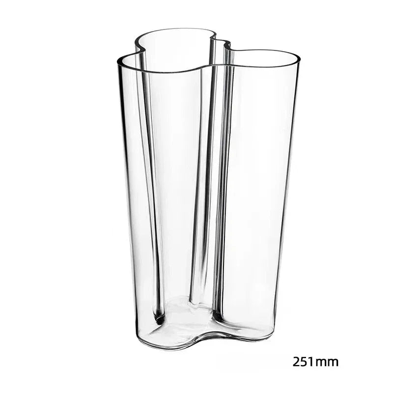 Skleněná ručně vyráběná váza Blown. Tato minimalistická zvlněná váza neobvyklého elegantního tvaru je ručně vyráběná a vytvoří krásnou květinovou kompozici. Ozdobí váš stůl nebo komodu a svým neobvyklým vzhledem působí jako exkluzivní dizajnový kousek umění u vás doma. Váza je dosupná ve dvou velikostech.